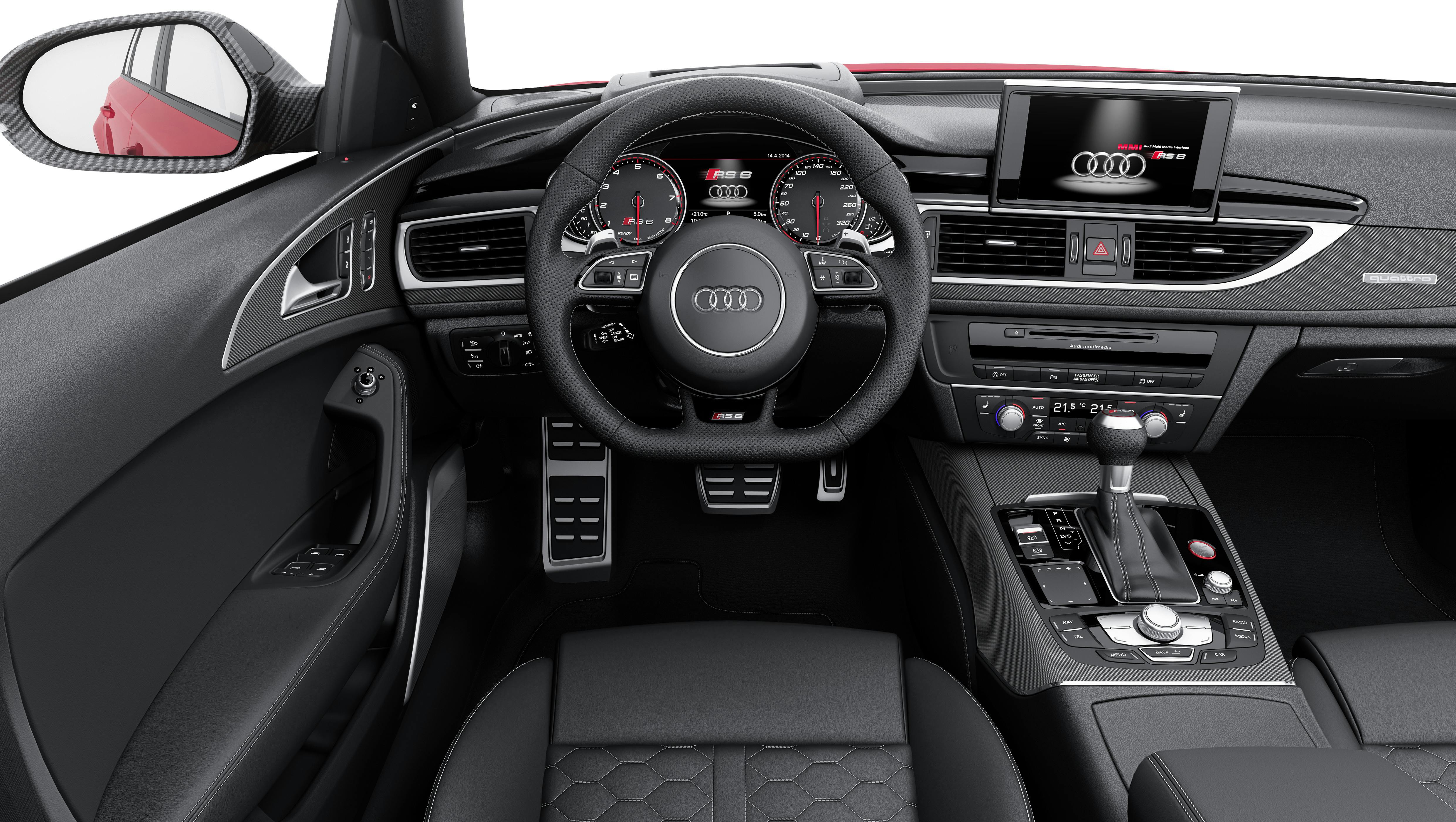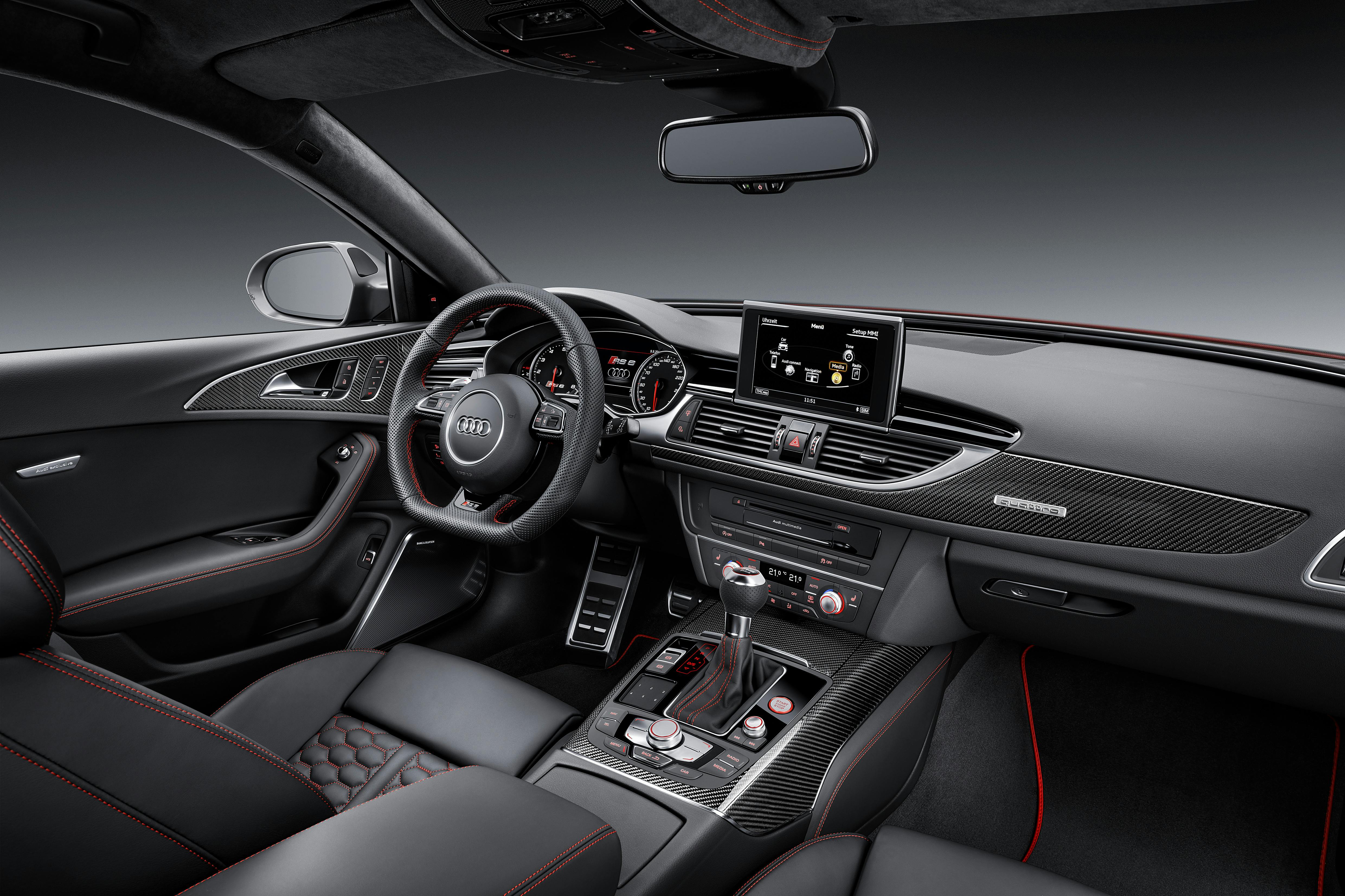 Beim RS6 sind Leichtmetallräder, 4-Zonen-Klimaautomatik und Soundanlage serienmäßig an Bord. Selbst LED-Scheinwerfer, Luftfederung, die elektrisch öffnende und schließende Heckklappe, Alcantara-Leder, Navigationssystem und elektrisch verstellbare Vordersitze kosten nichts extra.