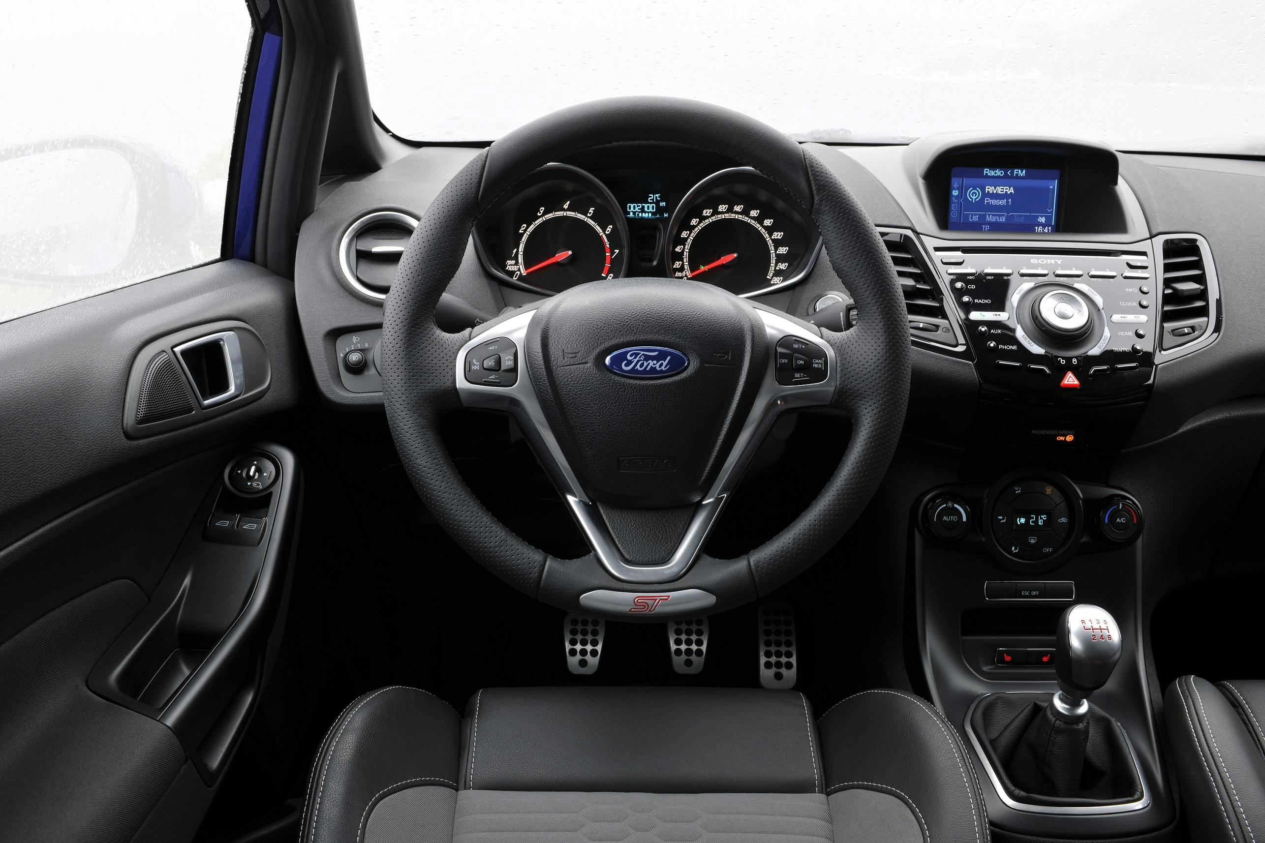 Bei Preisen ab knapp 20.700 Euro ist der Ford Fiesta ST recht ordentlich ausgestattet: Eine Klimaanlage ist beispielsweise ebenso serienmäßig an Bord wie vordere Recaro-Sitze, 17-Zoll-Leichtmetallräder und ein Berganfahrassistent. Zum Serienumfang gehört auch das Audiosystem CD mit Ford SYNC und AppLink. Das System beinhaltet ein Kommunikations- und Entertainmentsystem mit Sprachsteuerung, einen Notrufassistenten, eine Bluetooth- sowie USB-Schnittstelle und die Steuerung ausgewählter Smartphone-Apps per Sprachbefehl.