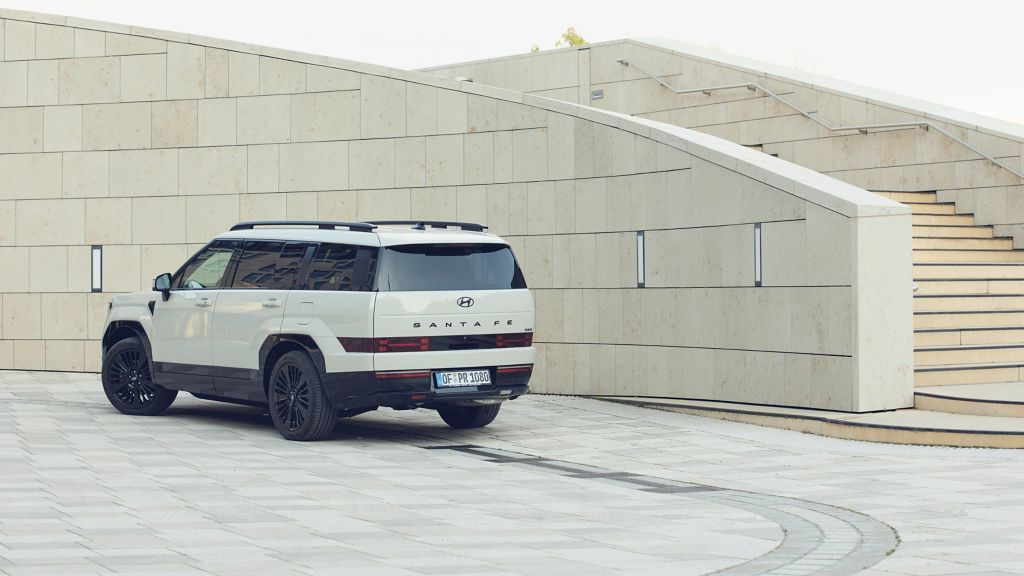 Die aktuelle Generation des SANTA FE Hybrid fällt durch ihr kantiges, fast schon videospielartig anmutendes Design auf. Der Wagen misst 4,83 Meter in der Länge und 1,90 Meter in der Breite. Die Kastenform sorgt für ein sehr großzügiges Raumangebot. Im Innenraum finden je nach Konfiguration fünf, sechs oder sieben Personen bequem Platz. Die zweite Sitzreihe ist längs verschiebbar, was den Einstieg in die dritte Reihe erleichtert. Auch große Personen haben in allen Sitzreihen ausreichend Kopf- und Beinfreiheit. Das Kofferraumvolumen liegt je nach Sitzstellung zwischen 628 und über 2.000 Litern.