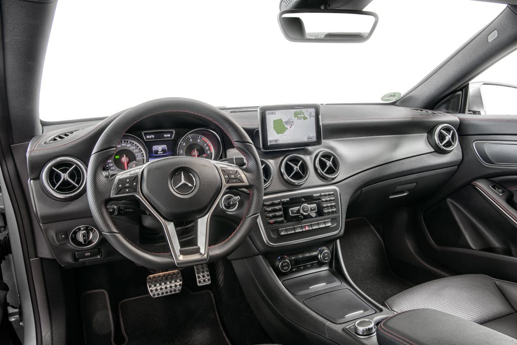 Die Basisausstattung des mindesten 29.250 Euro teuren CLA Coupés (C117) ist vergleichsweise mager, umfasst neben einer Klimaanlage noch vier Fensterheber, ein Audiosystem und 16-Zoll-Leichtmetallräder. Darüber hinaus lässt sich die Ausstattung mit den beiden zusätzlichen Urban Line und AMG Line, vielen Paketen und einzelnen Extras deutlich erweitern. Der Garmin Map Pilot für 595 Euro ist eine günstigere Alternative zum 3.522 Euro teuren Comand-Multimedia-Navigationssystem.