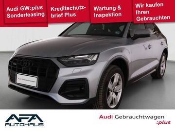 Speziell entwickelte Front- und Rückleuchten mit OLED-Technik sorgen für ein markantes Äußeres. Trapezförmige Endrohre am Heck verleihen dem Q5 zusätzlich einen sportlichen Look. Im Innenraum dominieren seit dem Facelift 2021 große, freistehende Displays in der Mittelkonsole und das digitale Cockpit. Schon in der Basisausstattung enthalten sind elektrische Spiegel, eine Klimaautomatik, ein Soundsystem mit acht Lautsprechern, eine elektrische Gepäckraumklappe und eine Frontscheibe in Wärmeschutz- und Akustikverglasung.